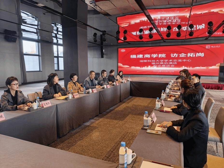 为深入贯彻落实党中央、国务院关于促进高校毕业生就业工作的决策部署,积极拓展毕业生就业渠道,深化产教融合,推动人才培养与市场需求精准对接,2026年3月13日,福建商学院副校长林文艺率队前往福州佩伯酒店开展访企拓岗专项行动。旅游与休闲管理学院党委书记陈瑞珠、副院长孔旭红、学生工作部副部长缪晓斌等陪同走访。